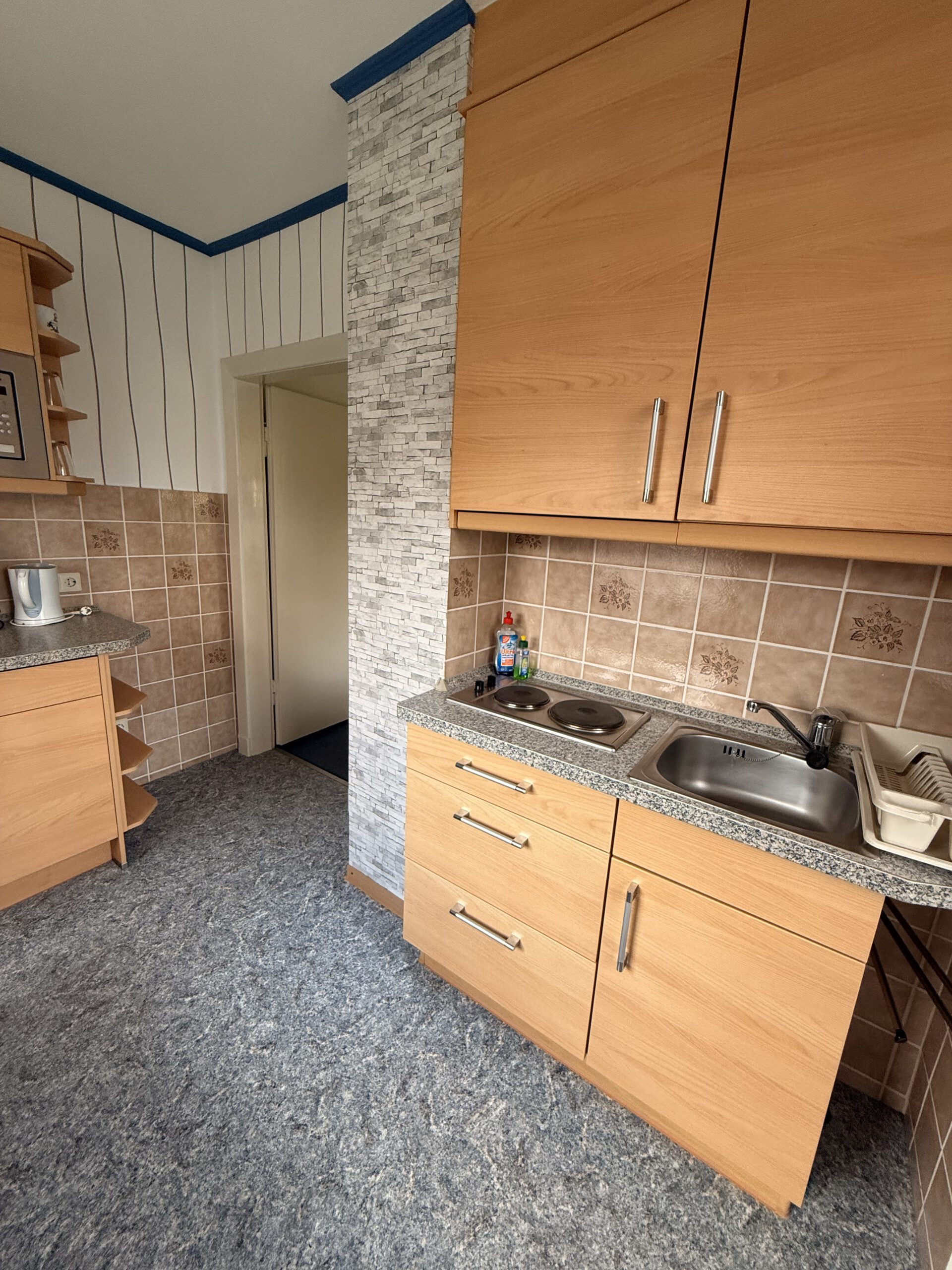 Die Wohnung ist 35 Quadratmeter groß, besteht aus Schlafzimmer, Wohnzimmer, Küche, Flur und Bad.